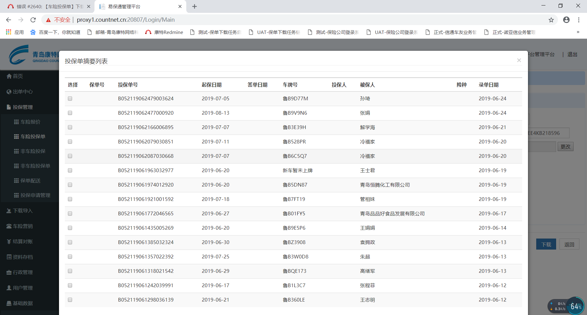 【车险投保单】华泰投保单下载,输入车架号下载投保单,检测的投保单列表不对,见附图