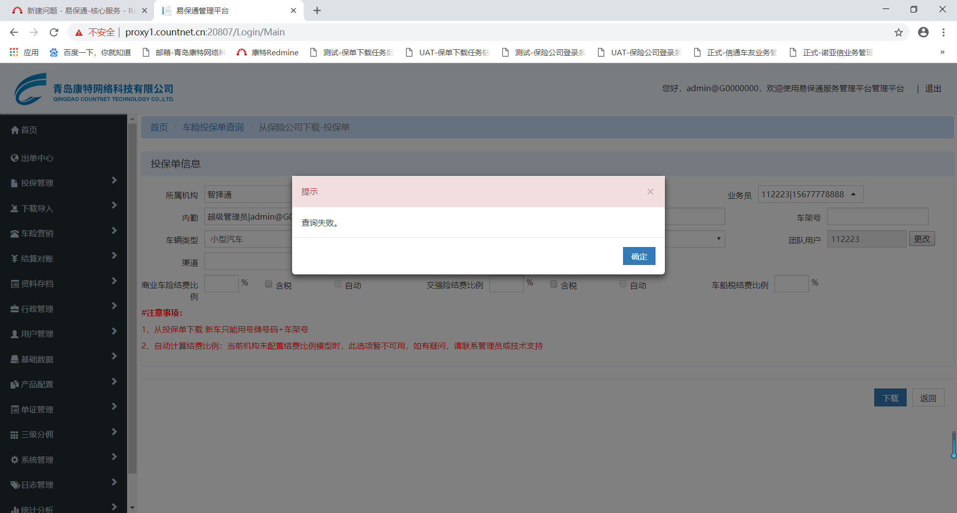 【车险投保单】华泰投保单下载,下载投保单时提示查询失败,见详情及附件