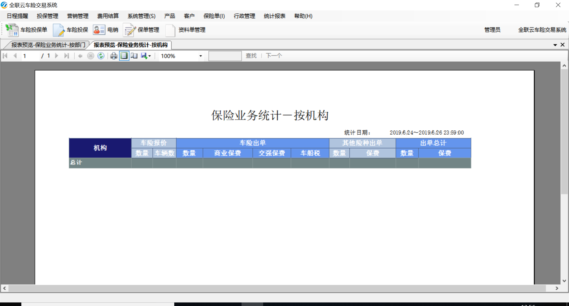 描述:按机构/按保险公司/按部门,统计报表业务数据时显示空白