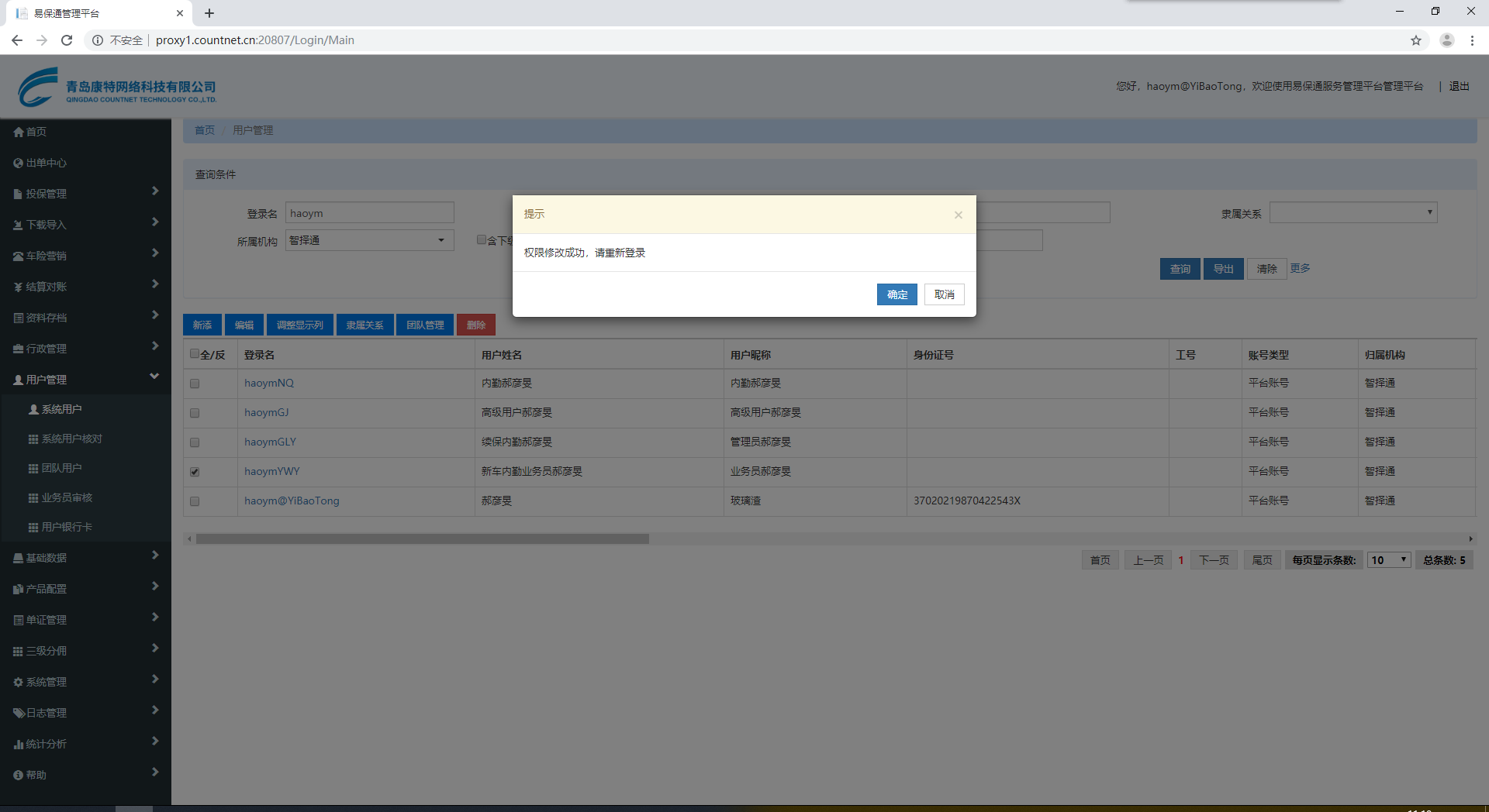 【测试环境】用户管理,修改非当前用户的权限也提示要重新登录