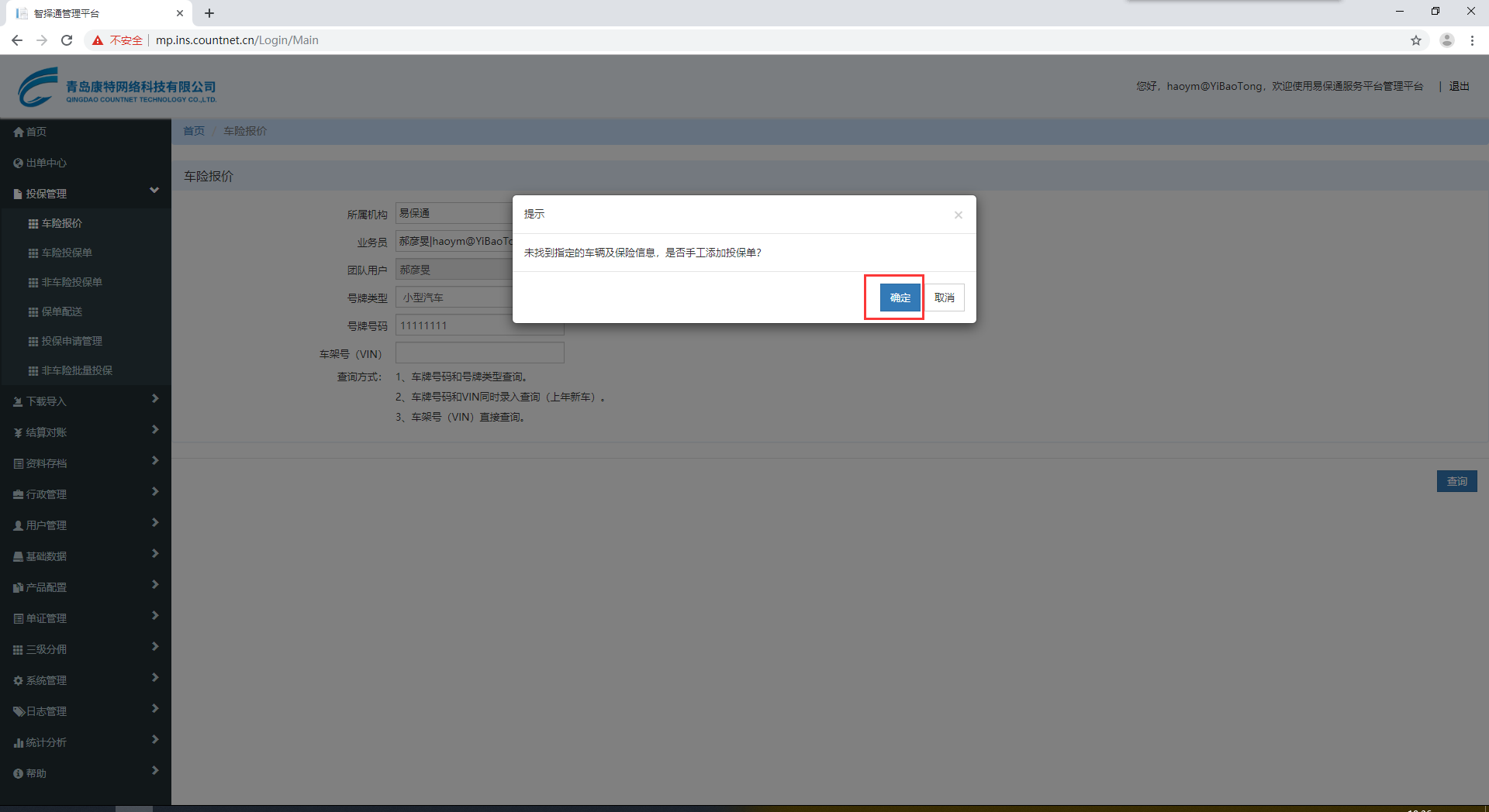 【速成高级版】车险报价,车牌号输入1111111,提示未找到续保信息手工添加投保单,然后新生成的投保单都附上了其他机构已存在的投保单