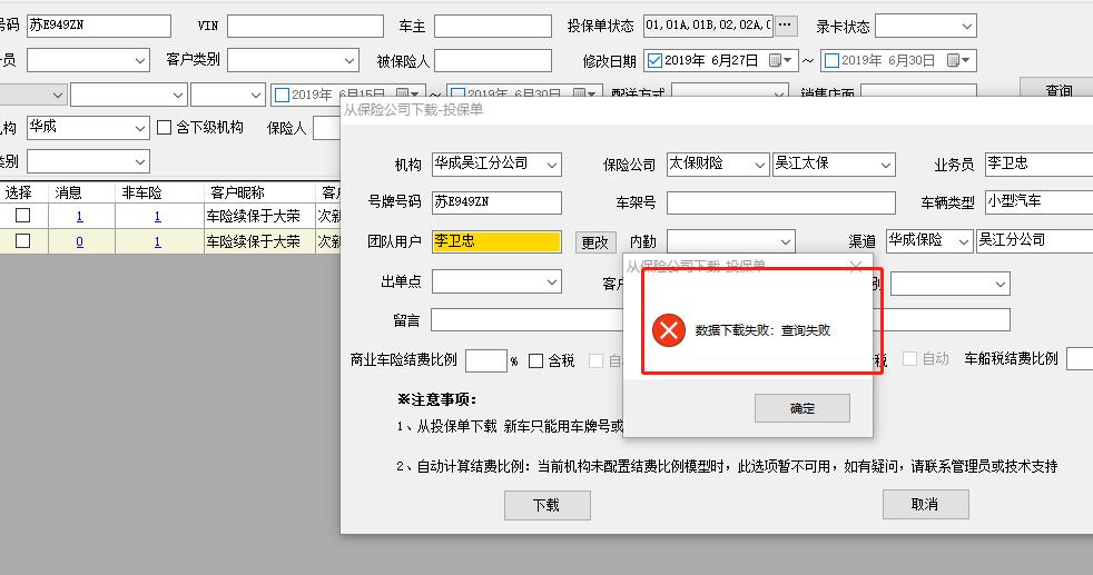 车牌号:苏E949ZN 华成吴江机构太保无法成功下载投保单。