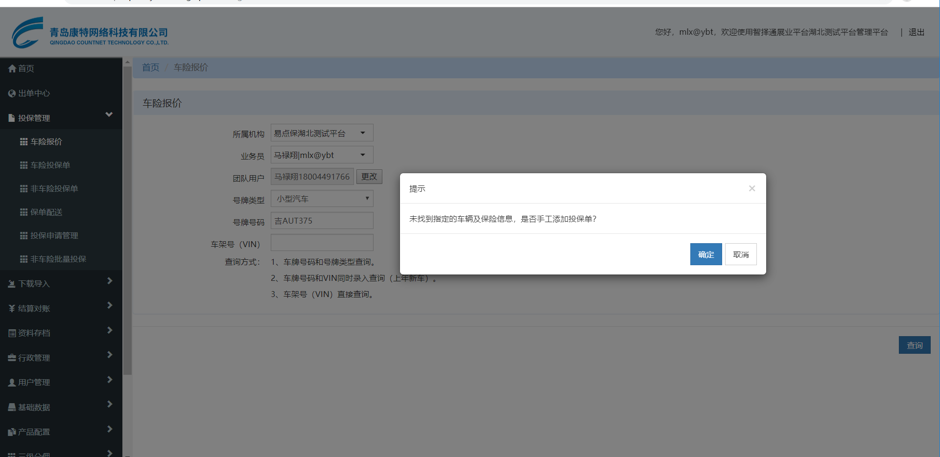 描述:网页上使用续保查询功能获取续保信息提示“未查询到结果”进入详情页面却显示其他的车辆信息,如附件所示