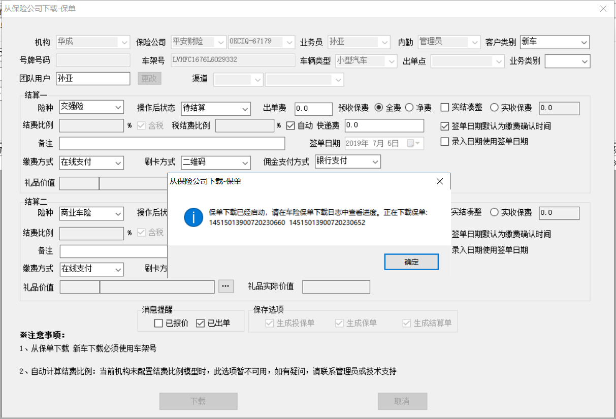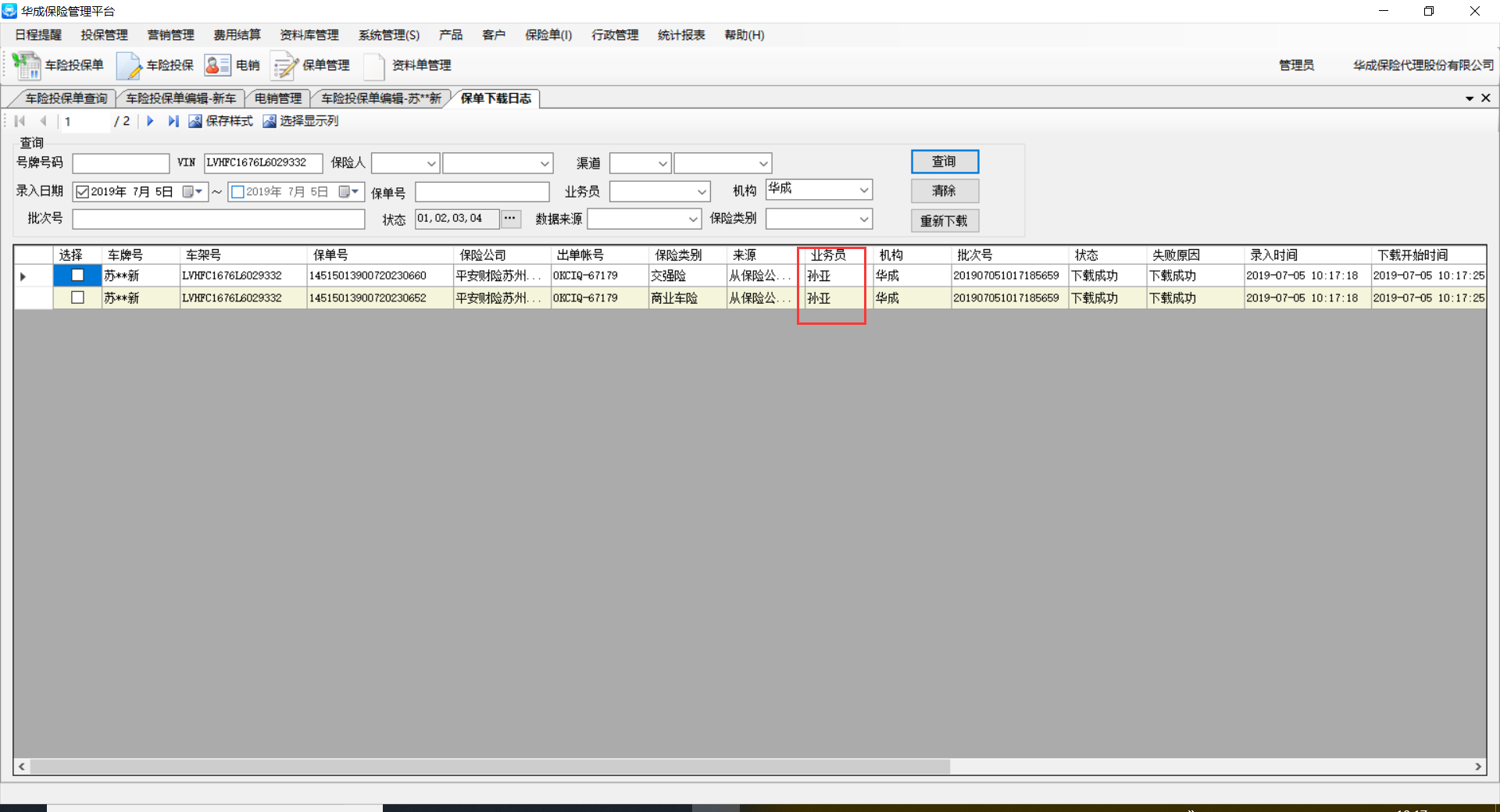 描述:从保险公司直接下载保单时,选择的业务员在下载时全部自动变更为了孙亚