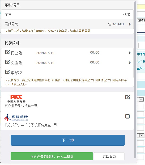 选中相应的报价险别。但,像已经起保车辆在交互后如果确定已经起保,则在选择险种时自动屏蔽