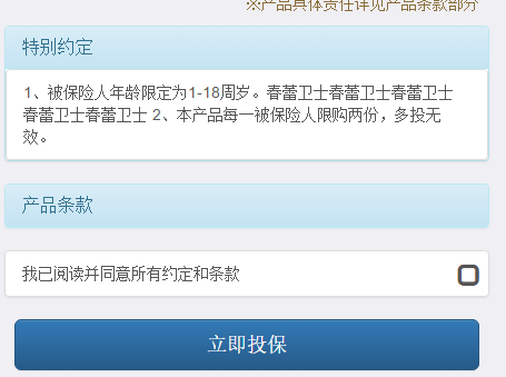 进入非车险商城选择春蕾卫士投保,生成投保单后查看详情,特别约定不显示
