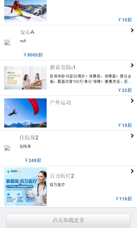 【非车险商城】在全部产品界面,点击一直加载更多,之前加载出的产品不显示