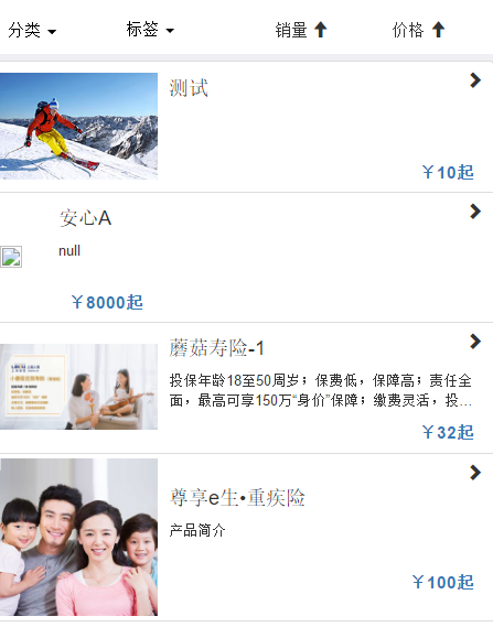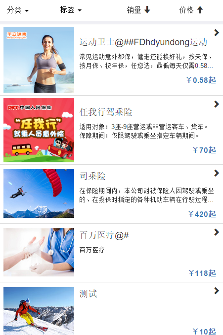 进入非车险商城,进入全部产品直接点击销量排序,销量从高到低,从低到高都有测试产品