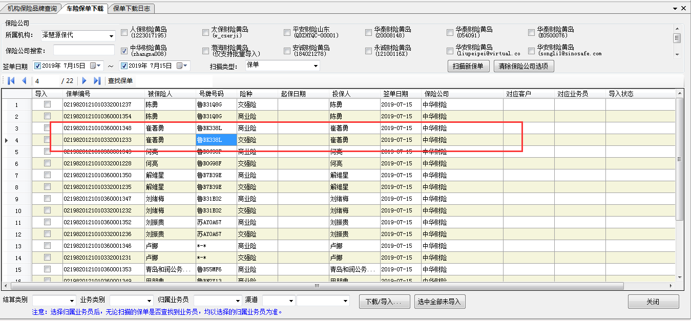 扫描保单时可以扫描到相应保单数据,下载时则提示错误信息,经检查是批量问题,需尽快处理。