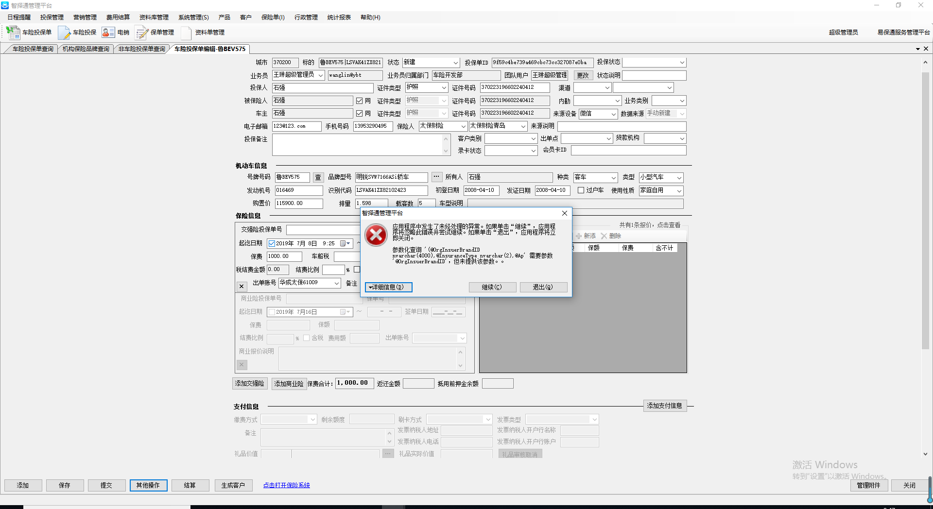 - 主题 从 【投保司乘险】投保时会出现报错情况 变更为 【投保司乘险】保存投保单时会出现报错情况