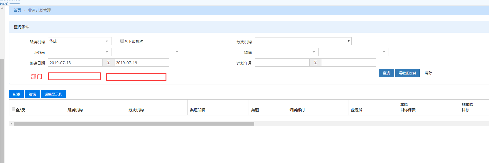 3、管理页面的查询条件需增加“部门”的查询选项。
