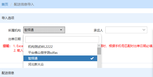 B/S测试环境,下载导入-保单配送导入-所属机构显示不全