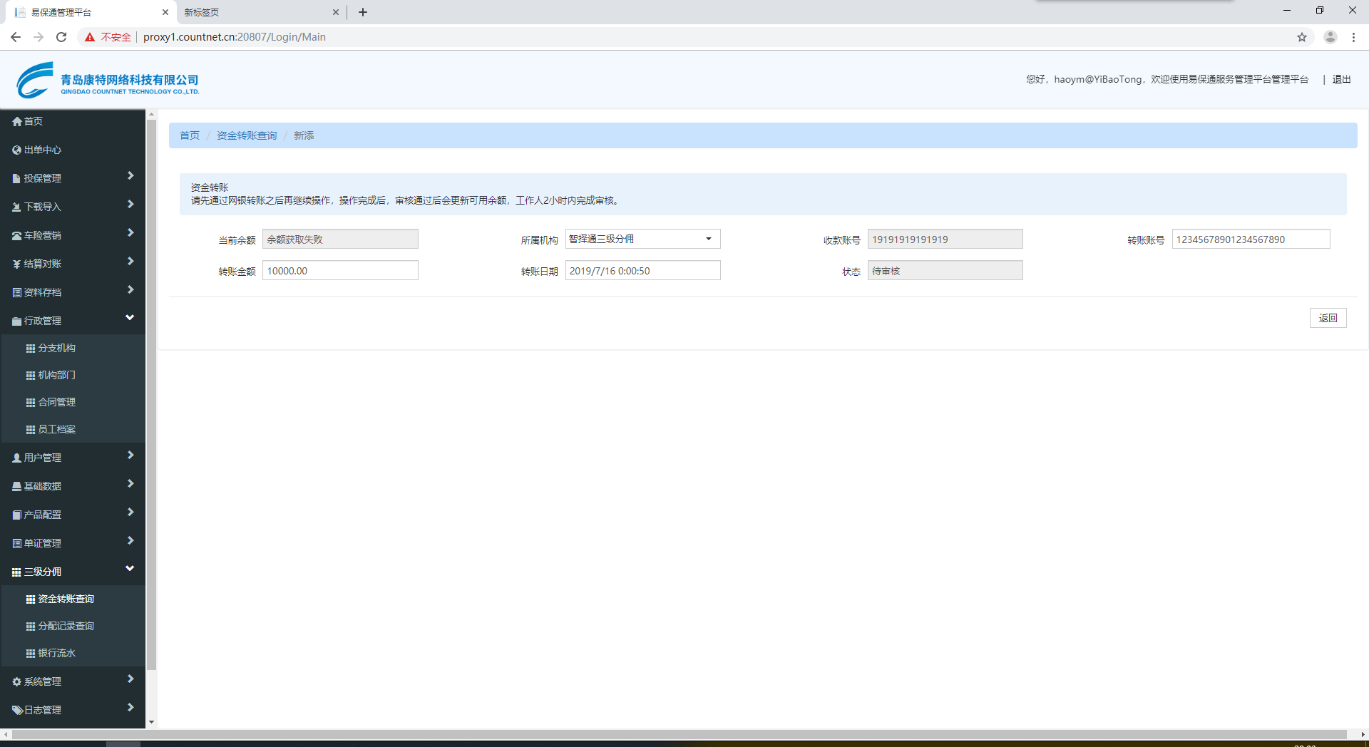 【佣金代付】资金转账查询,新添记录提交成功后,所属机构变为科技公司机构,且余额获取失败