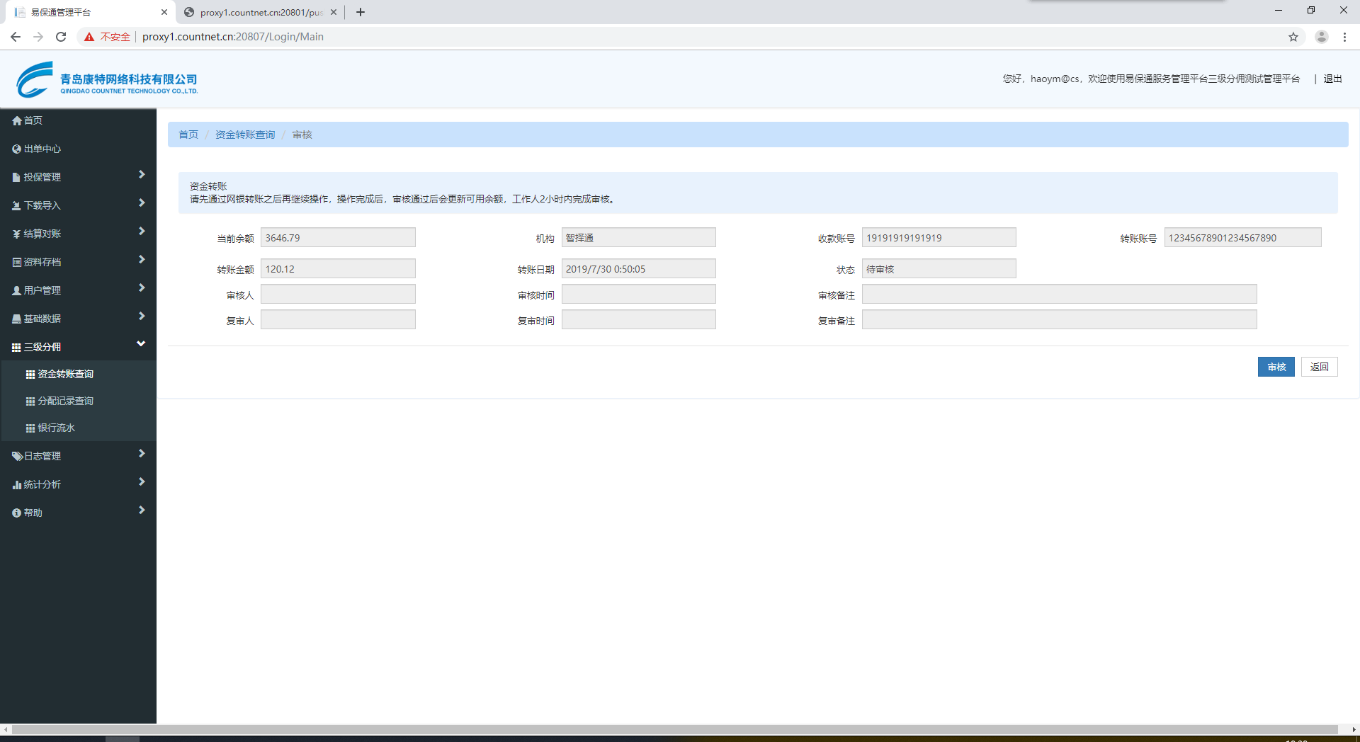 【佣金代付】资金转账查询,科技公司会计权限用户,进入审核页面没有要求输入财务密码