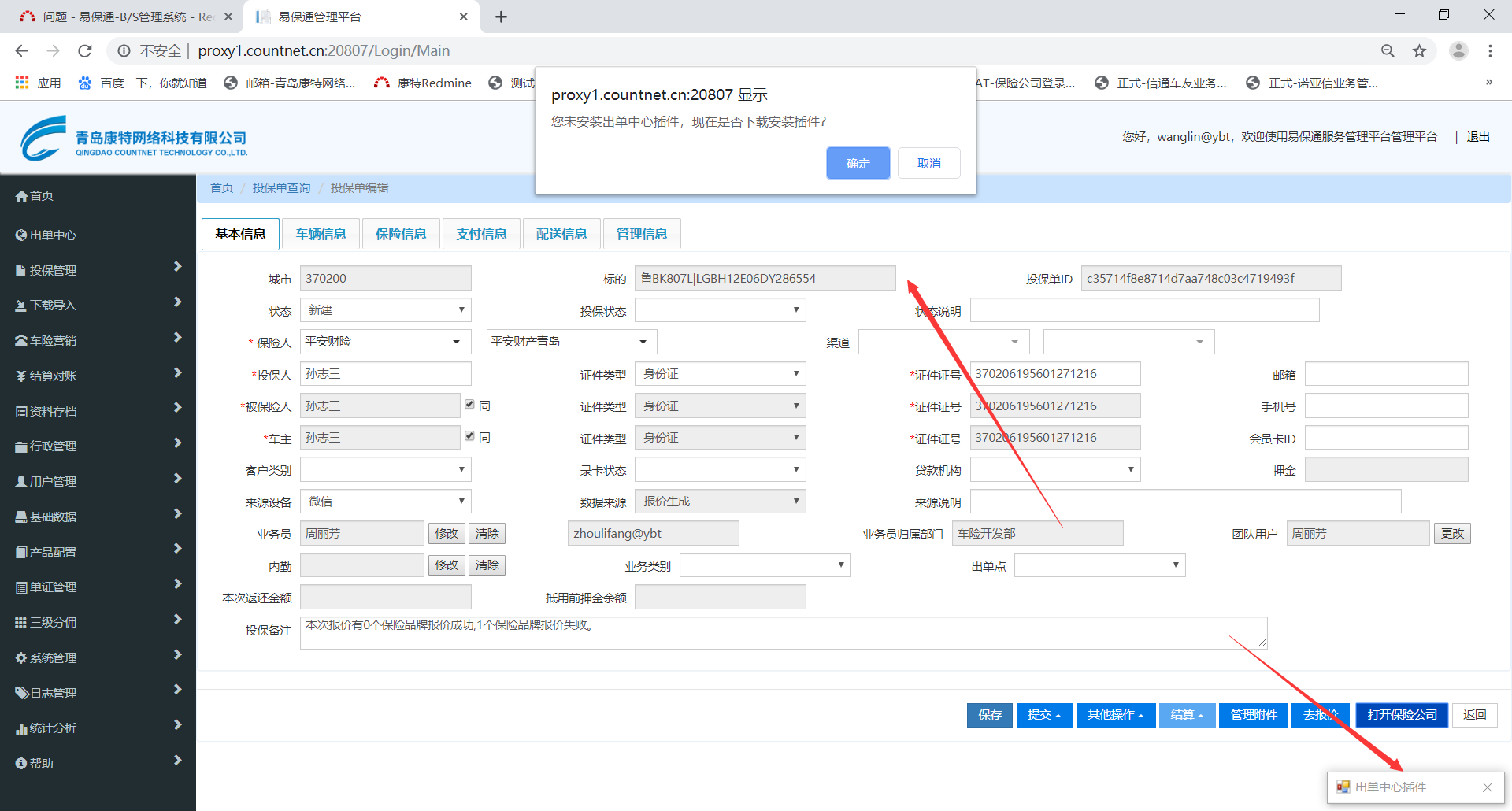 出现的情况:出单中心打开保险公司,投保单编辑页面打开保险公司的入口都有可能提示