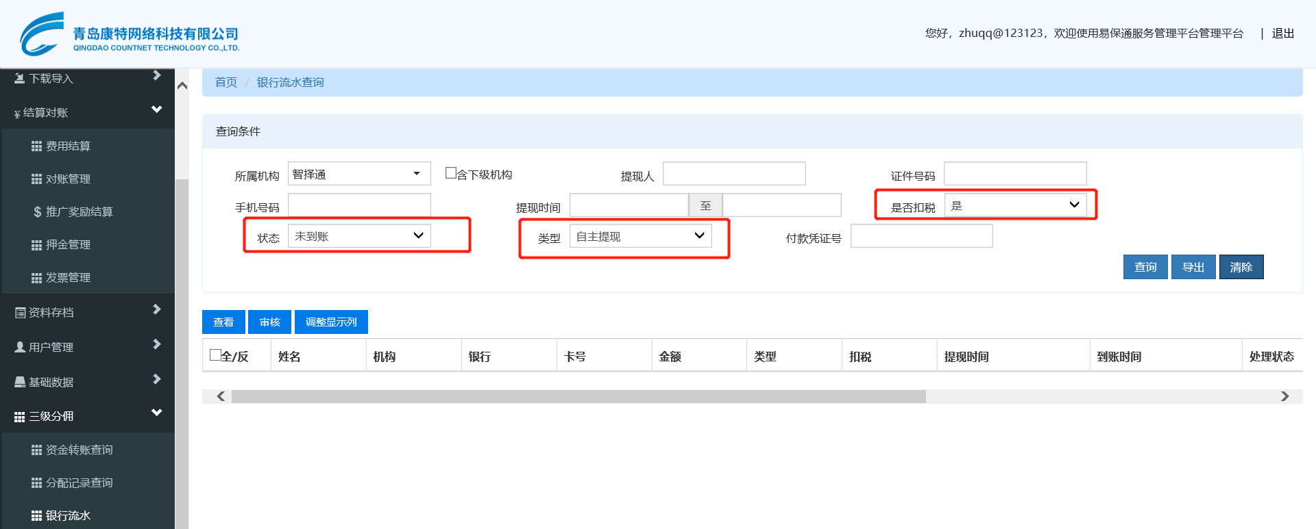 【佣金代付】银行流水,点击清除按键,查询条件未变为默认。