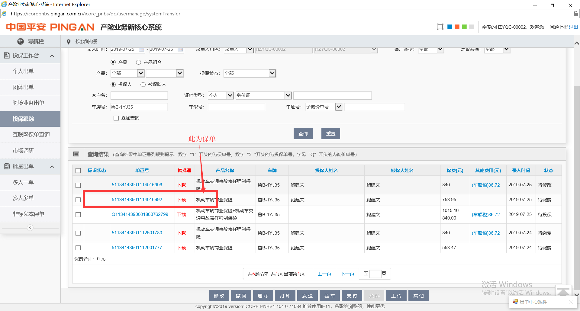 经在保险公司系统内确认,该号为投保单号,故非bug