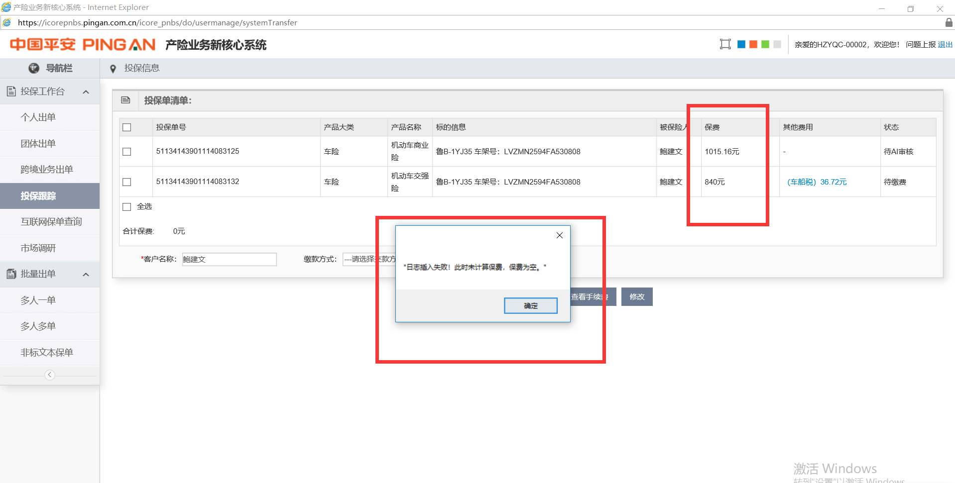 实际已经报价成功并核保通过