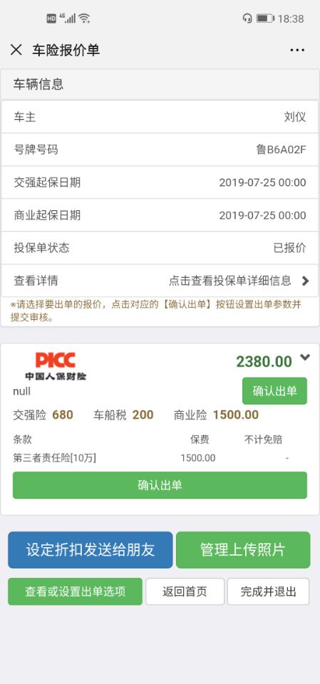 【微信端】选择机构保险品牌列表,如果出单账号没有填写优惠信息,微信端会显示null,见图