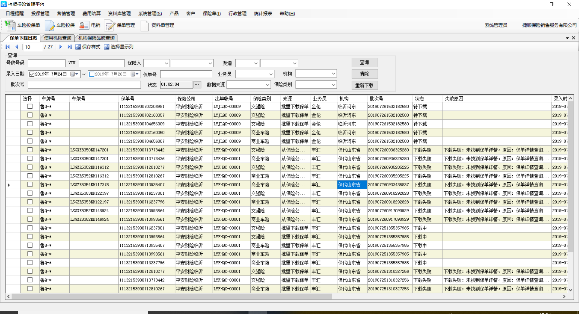 【捷顺】平安山东省保单下载提示“下载失败:未找到保单详情。原因:保单详情查询出错:未将对象引用设置到对象的实例。”