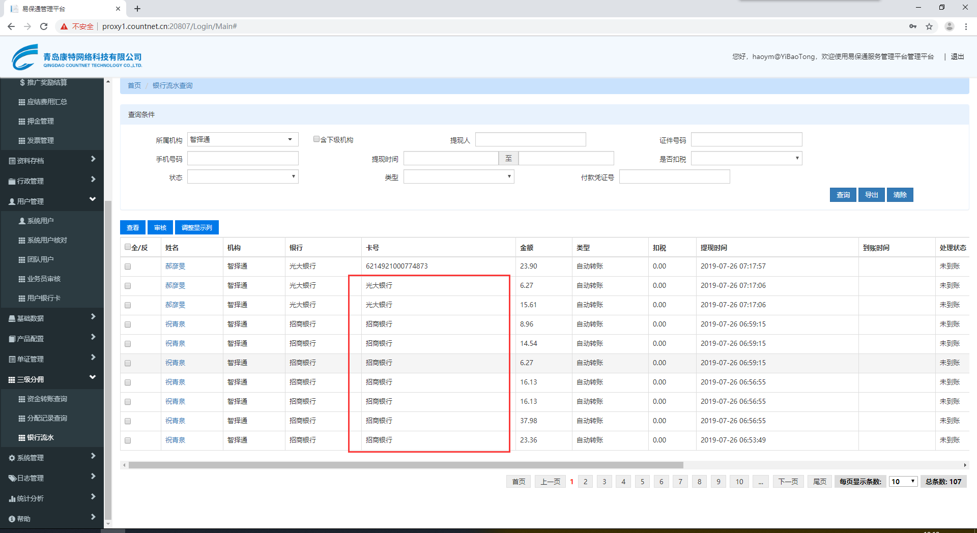【佣金代付】银行流水,批量结算生成的银行流水记录显示为开户行信息