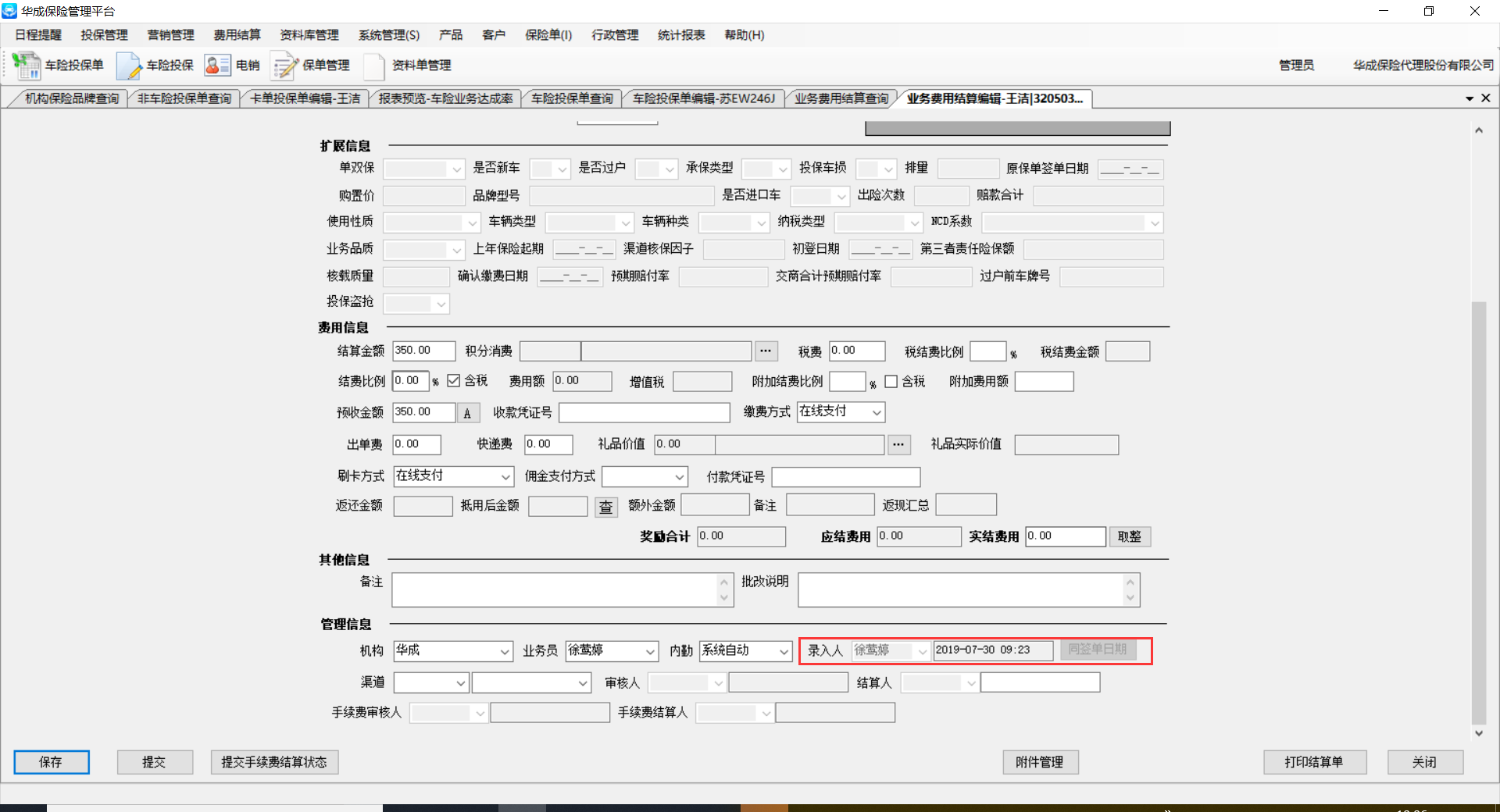 描述:“车险业务达成率”统计的非车险件数有误, 上述两单非车险的结算单录入时间为2019-07-30,统计车险业务达成率需要选择到2019-07-29才能统计业务。