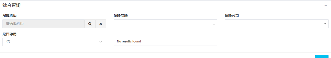 报价账号管理,综合查询条件,选择保险品牌查询,提示找不到结果。备注:保险公司同样的错误