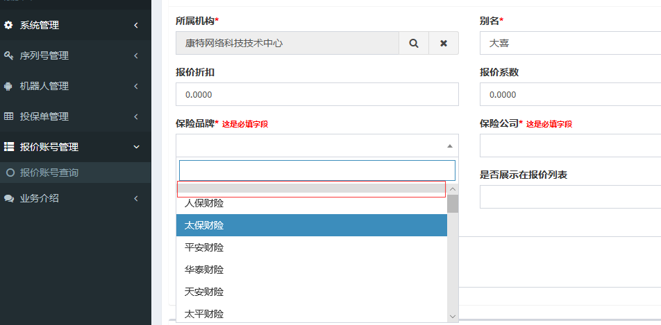 报价帐号管理编辑界面,选择保险品牌时,下拉框空白选项,显示不美观