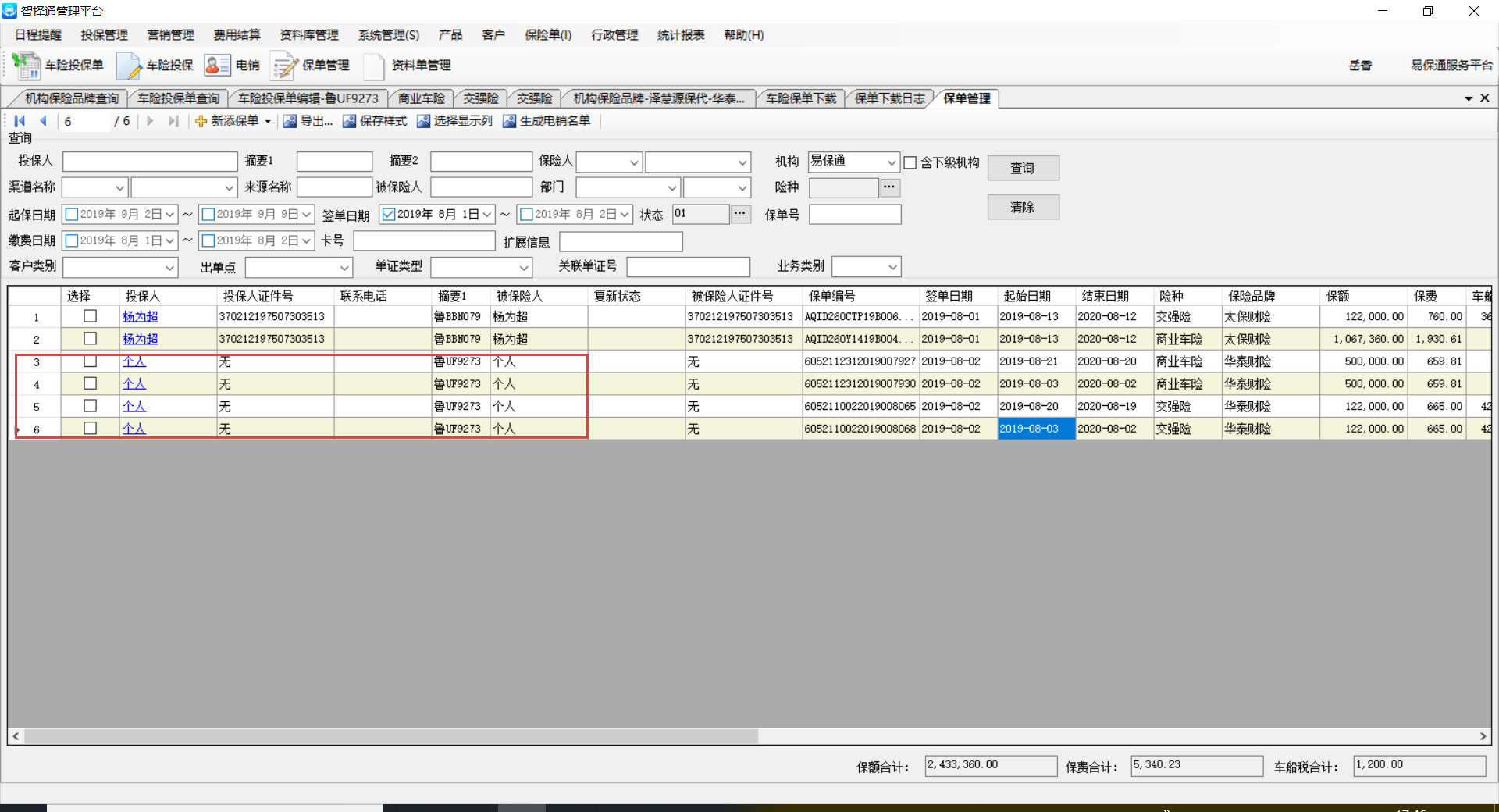 描述:从保险公司下载的数据投保人/被保人/车主全部显示为个人