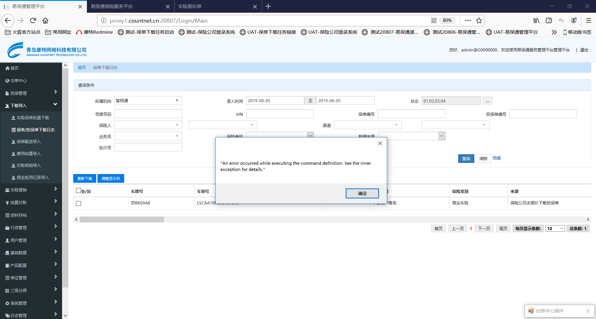 【出单中心2.0】下载投保单时报错。报错内容及步骤见详情