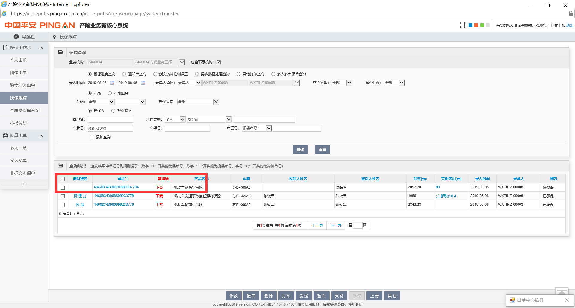 测试投保单:Q460834390001880307794 苏B-K69A8
