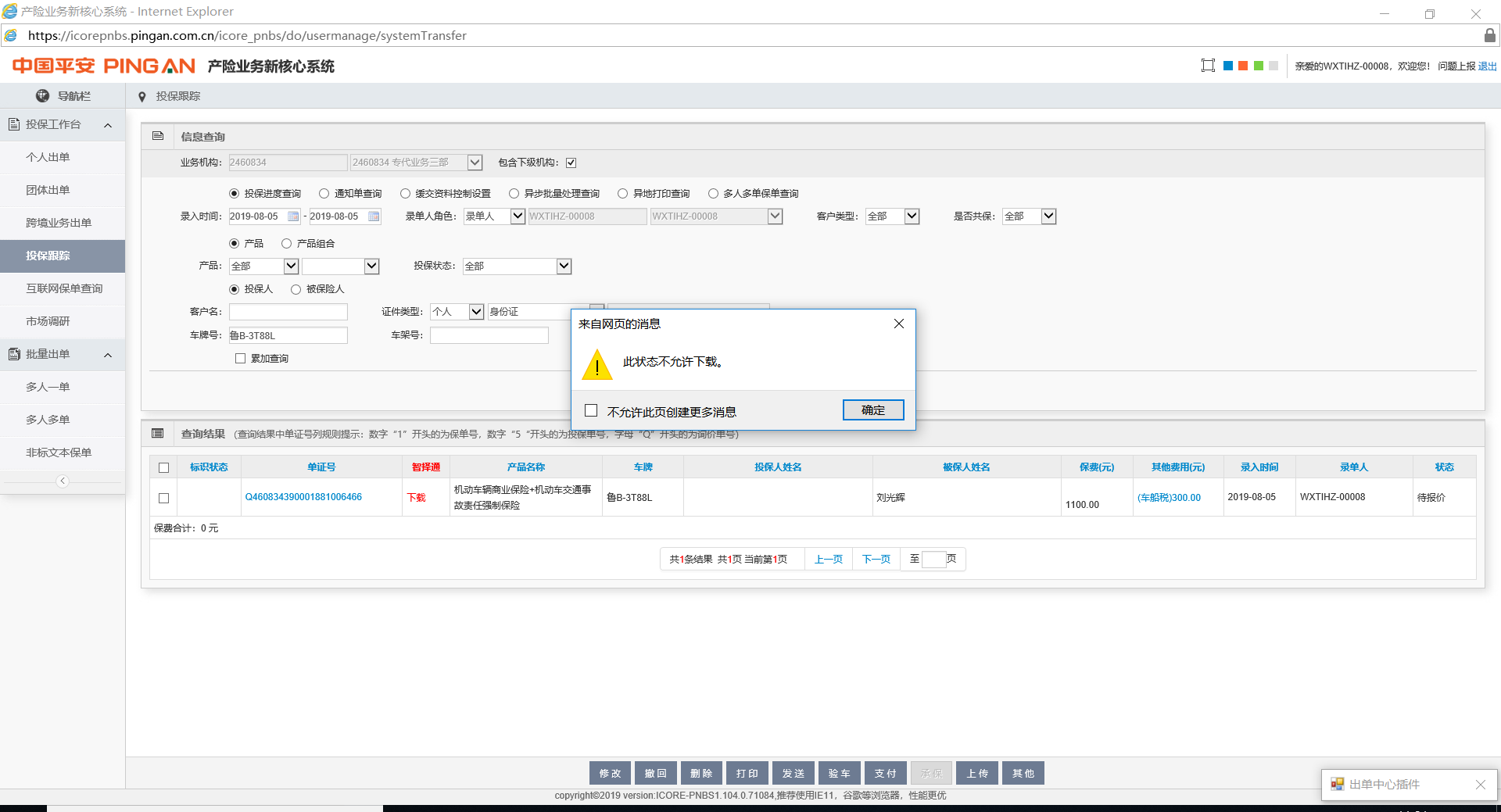 【出单中心2.0】在保险公司内,便捷下载投保单时,提示不能下载,但是在投保单编辑页面点保存提示可以下载,但是下载时提示保费为空