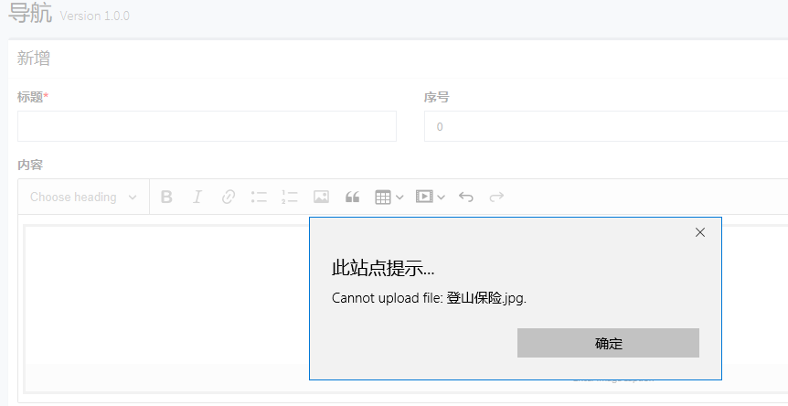 业务介绍点击新增上传图片,提示不能上传文件。