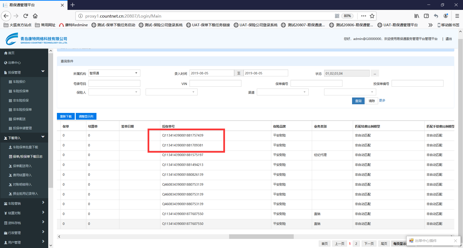 投保单下载成功后,系统中也未找到该投保单。日志中点击投保单数量的“1”打开的也是原来的投保单