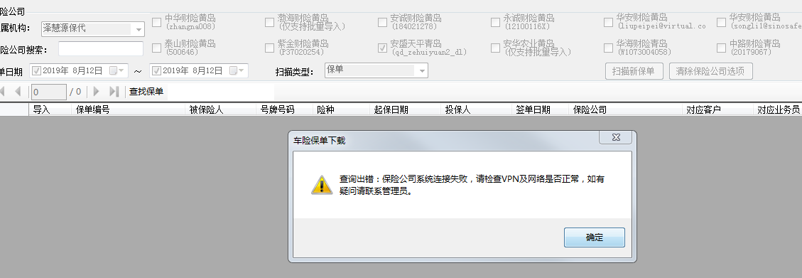 【泽慧源】安盛天平下载保单提示保险公司系统连接失败,请检查VPN及网络是否正常