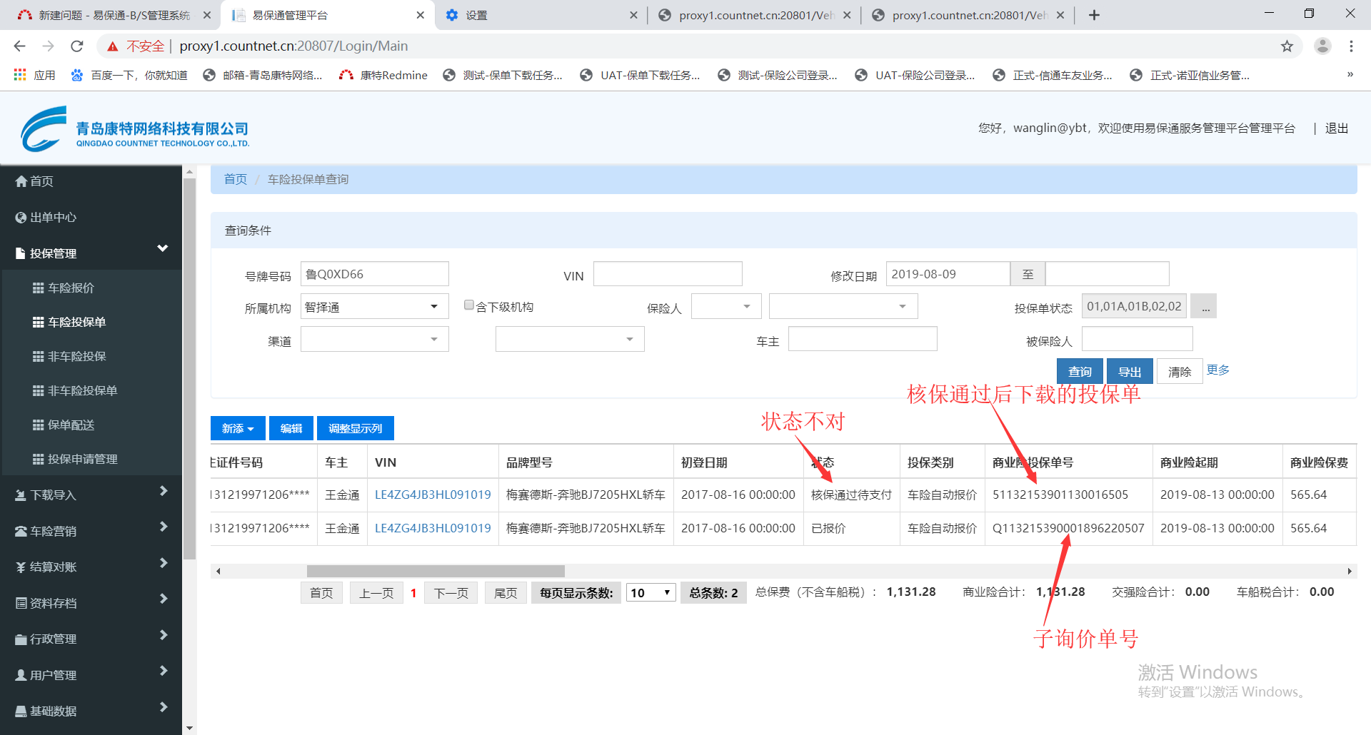 2. 回到保险公司,直接申请核保,核保通过后提示是否下载,选是,下载成功后:管理系统新增了一条状态为“核保通过待支付”的投保单,没有更新原来的投保单
