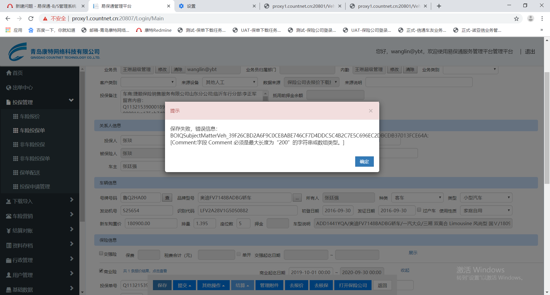 【出单中心2.0】同一张投保单操作多次下载更新后,保存会报错,该问题影响编辑页面的去报价、去核保、打开保险公司系统的测试,故记在出单中心bug中