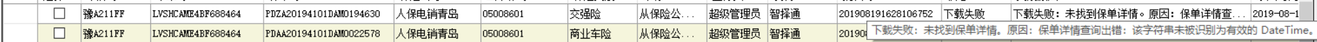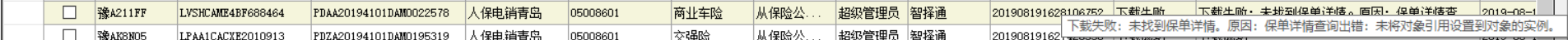 车驾号:LGG7C2D2XFZ052336、LGWEF4A55FF390905、LVSHCAME4BF688464提示‘未将对象引用设置到对象的实例’,LFMJ34AF9H3113278、LVSHCAME4BF688464交强险保单下载提示‘该字符串未被识别为有效的Date time’