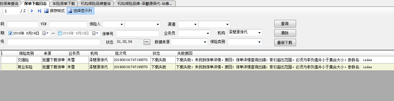 【泽慧源】华泰下载失败,提示信息下载失败:未找到保单详情。原因:保单详情查询出错:索引超出范围。必须为非负值并小于集合大小。 参数名: index