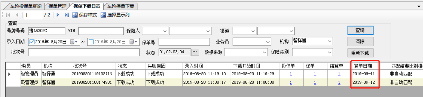 【人保电销】保单下载,下载保单是设置的签单日期和下载成功后的签单日期显示不一致。