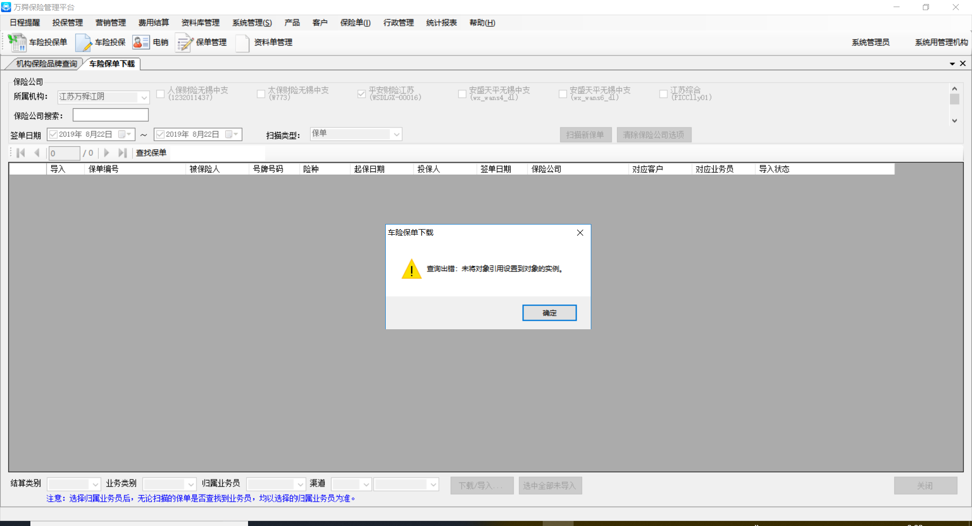 【江苏万舜】平安保单下载及扫描提示“未将对象引用设置到对象的实例”