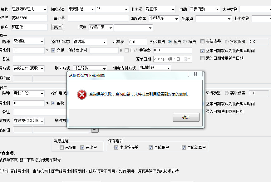 描述:平安保单下载及扫描提示“未将对象引用设置到对象的实例”