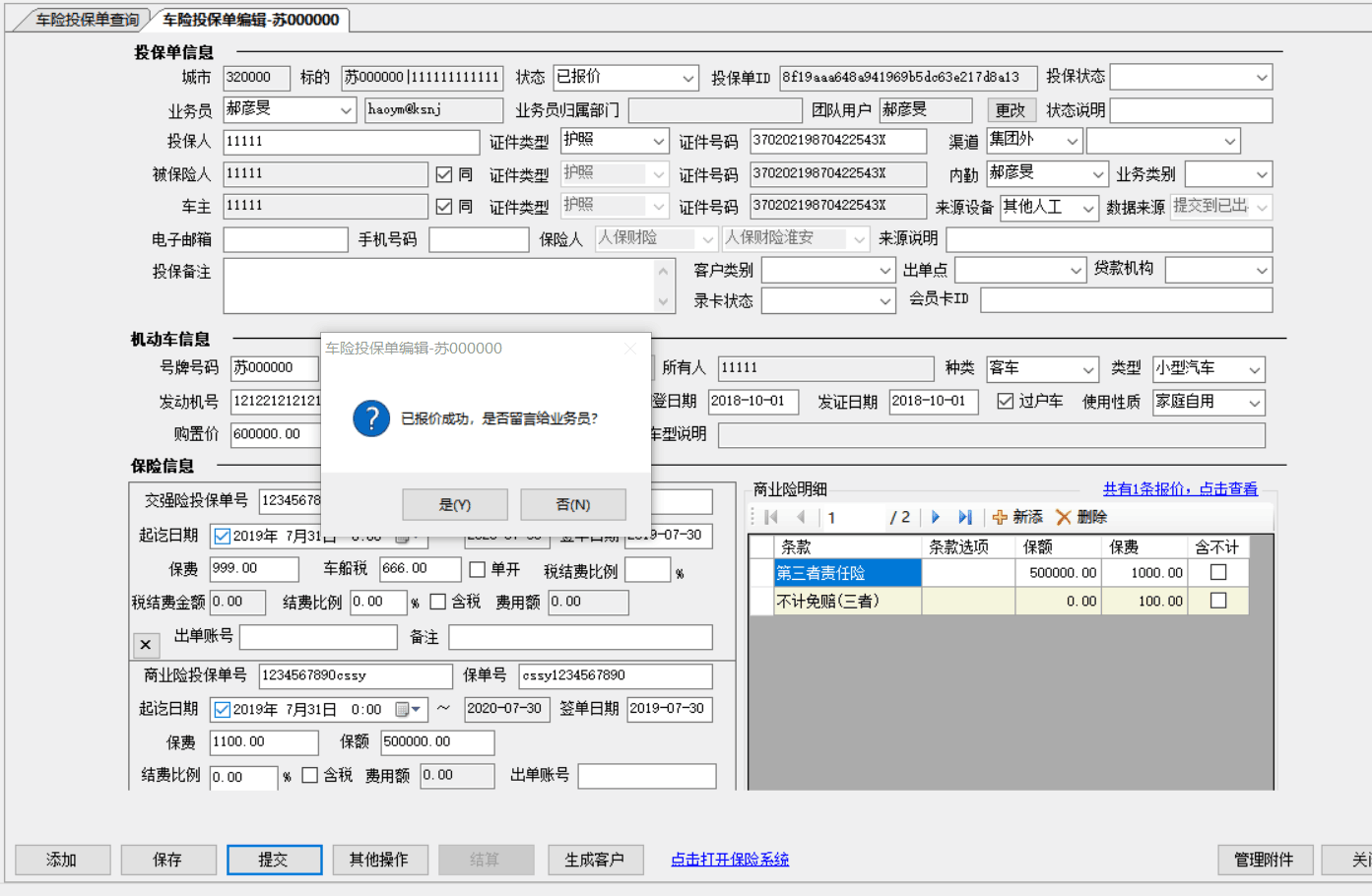 【捷顺】投保单编辑,当出单账号为空且需要手动输入时,提交投保单状态至已报价,可以提交成功没有提示。