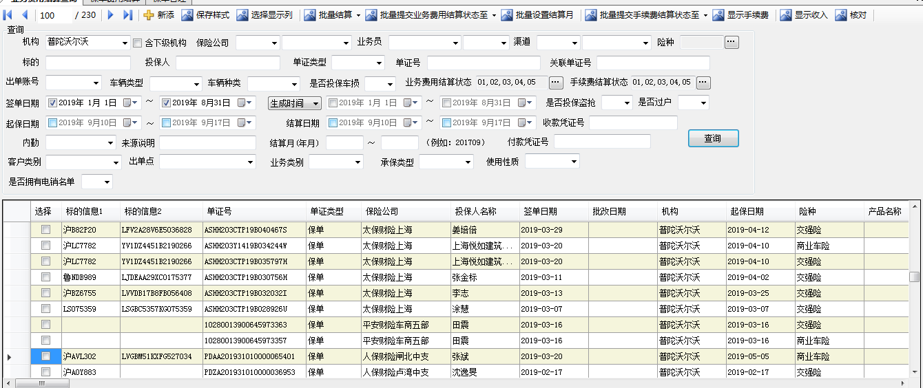 业务数据范围:新港广丰 2019年1月1日~2019年8月31日 的业务数据(包含结算单、保单、投保单、保单费用结算)