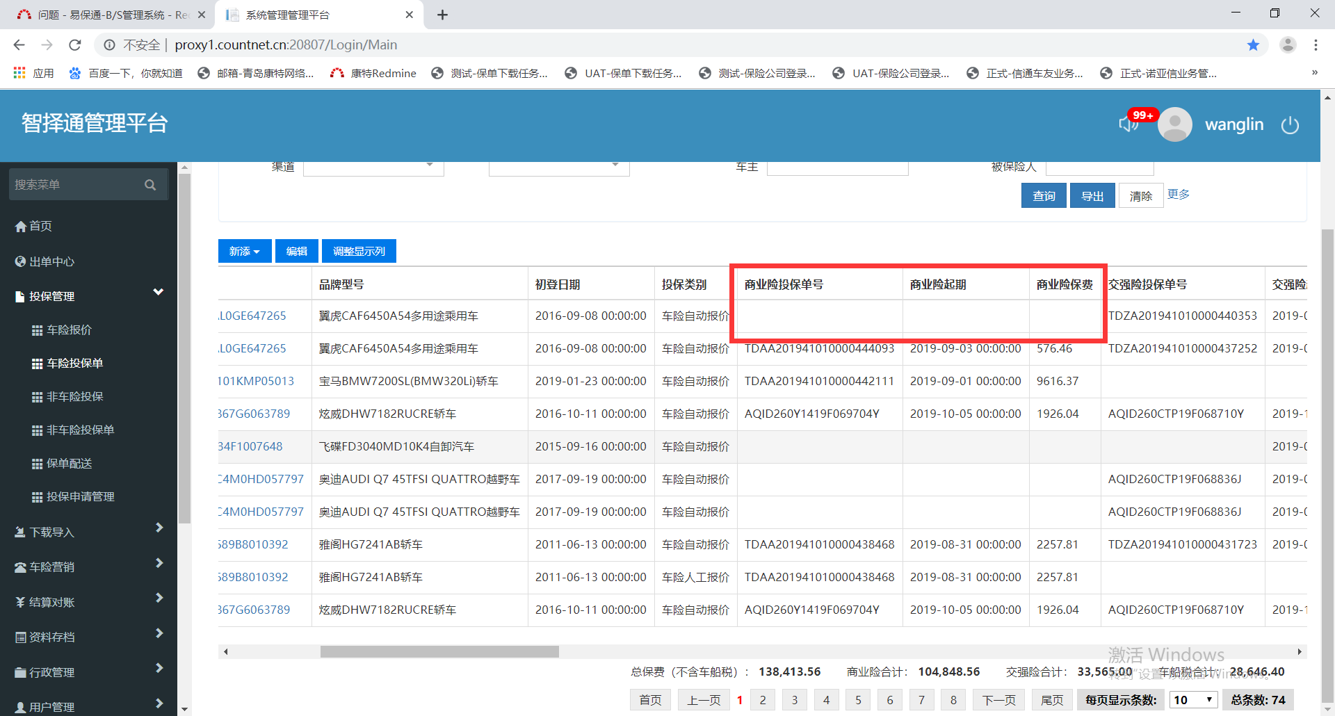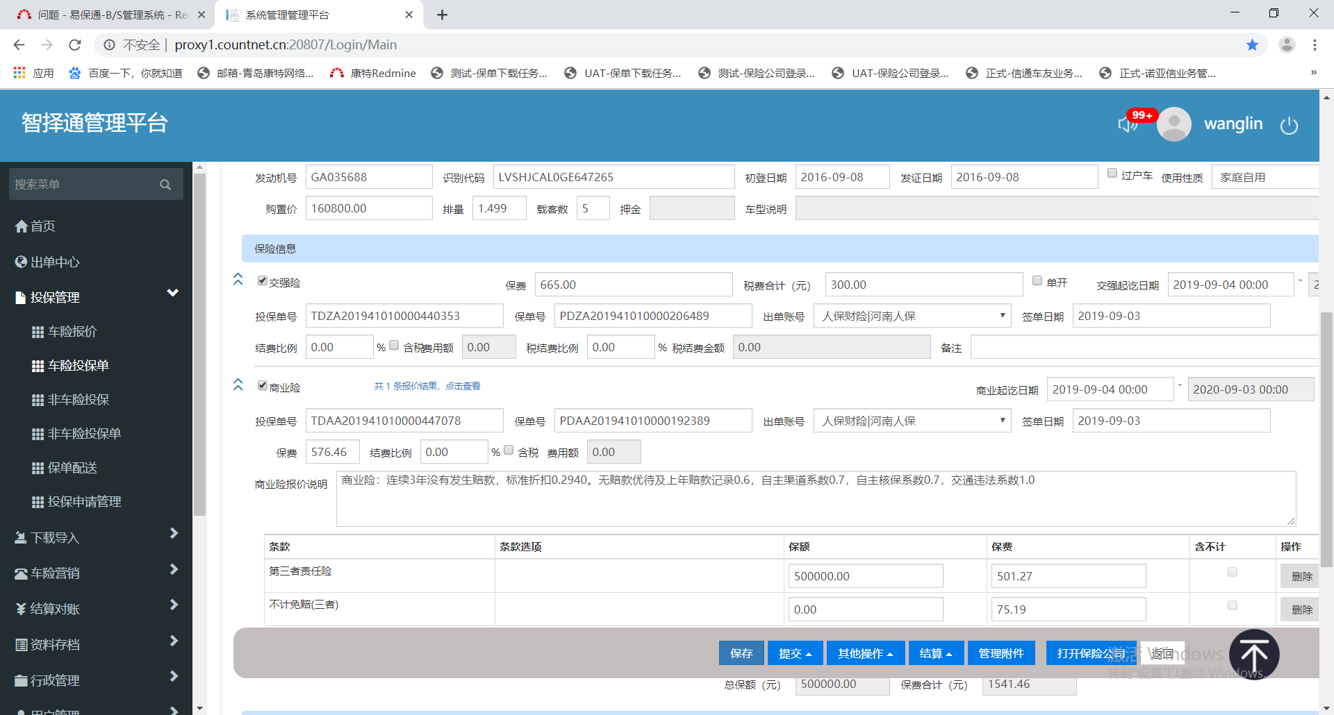 管理系统中已经存在投保单且只有一个交强险的信息,去保险公司便捷下载只下载商业险保单,下载成功会生成投保单,查看投保单列表,没有显示商业险信息(见图),打开投保单有商业险信息,见图