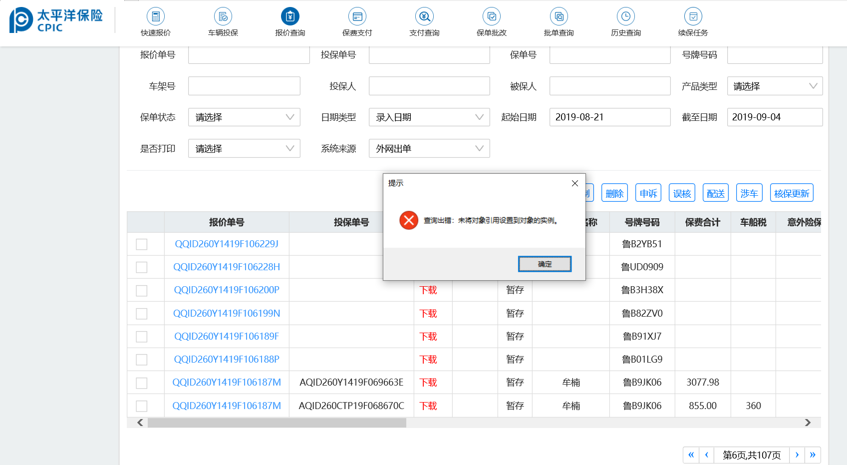 1、从出单中心进入保险公司系统-报价查询-对没有投保单号的数据点击下载。