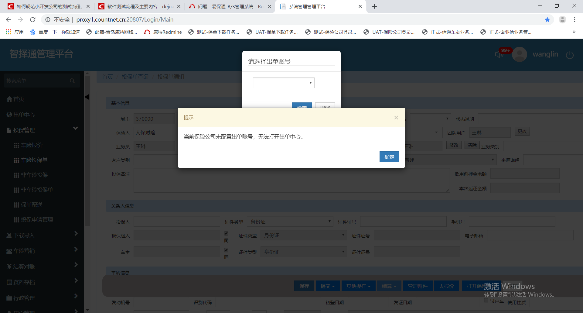 如果没有配出单账号,不要弹出出单账号选择弹窗,只给出提示信息即可