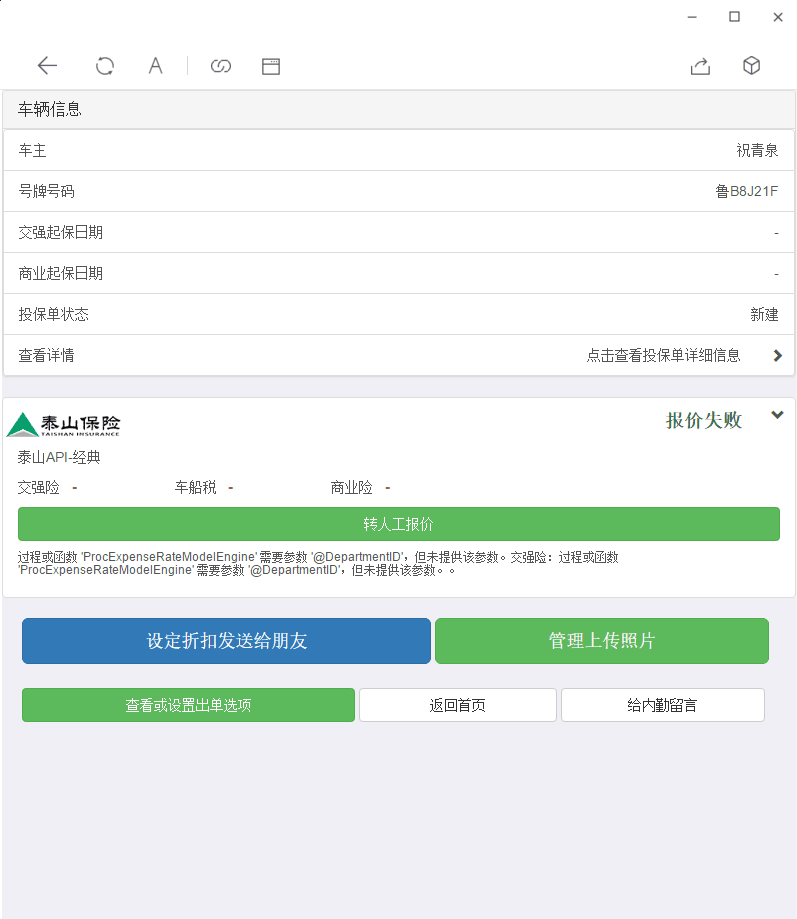 【接口-车险-经典】泰山,微信报价失败。
