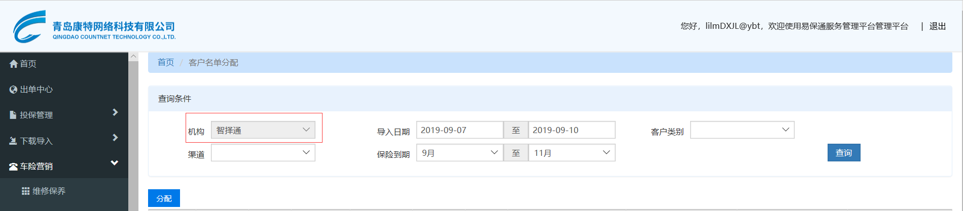【电销管理】电销名单分配,机构不能下拉选择