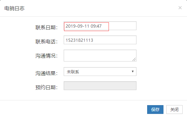 【电销管理】电销客户管理编辑界面,电销日志-联系日期时间未精确到秒